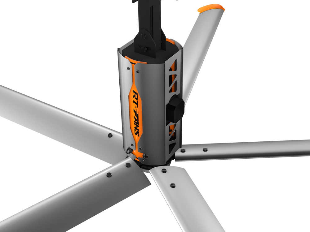 5、安裝安全便利,美觀亮麗:風(fēng)扇安裝在離地面3.5米以上的上部空間,通過卡夾方式固定在屋面結(jié)構(gòu)梁上,不會影響任何地面工作區(qū)域正常工作進(jìn)程,美觀、大氣、安全可靠。若風(fēng)扇選配絢麗的瑞泰風(fēng)彩色扇葉,自然形成一道亮麗的風(fēng)景線。